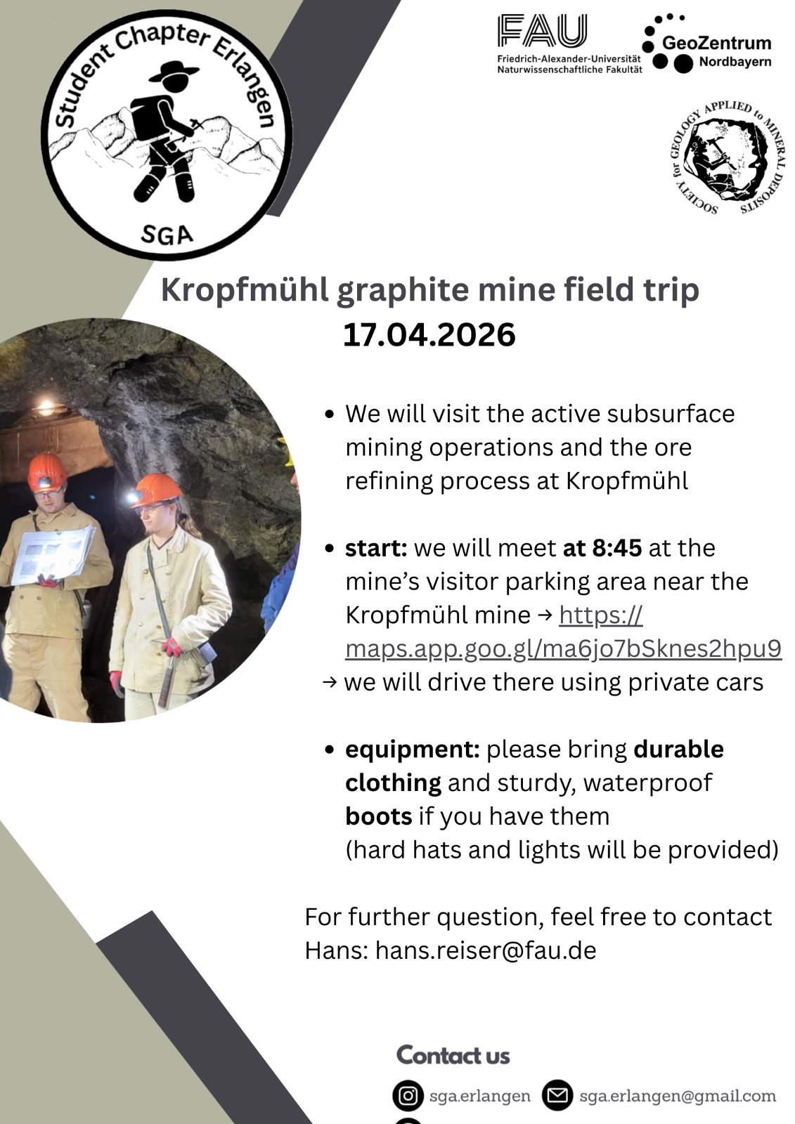 (ℹ️ Diese Exkursion ist nicht auf SGA-Mitglieder aus Erlangen beschränkt. Auch externe Teilnehmer aus anderen SGA chapter können sich bewerben.)